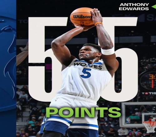 这场比赛,狼王爱德华兹打出了赛季最强一战:全场出战40分钟,投篮33中19,三分16中9,罚球9中8,爆砍55分4篮板3助攻,正负值+8。